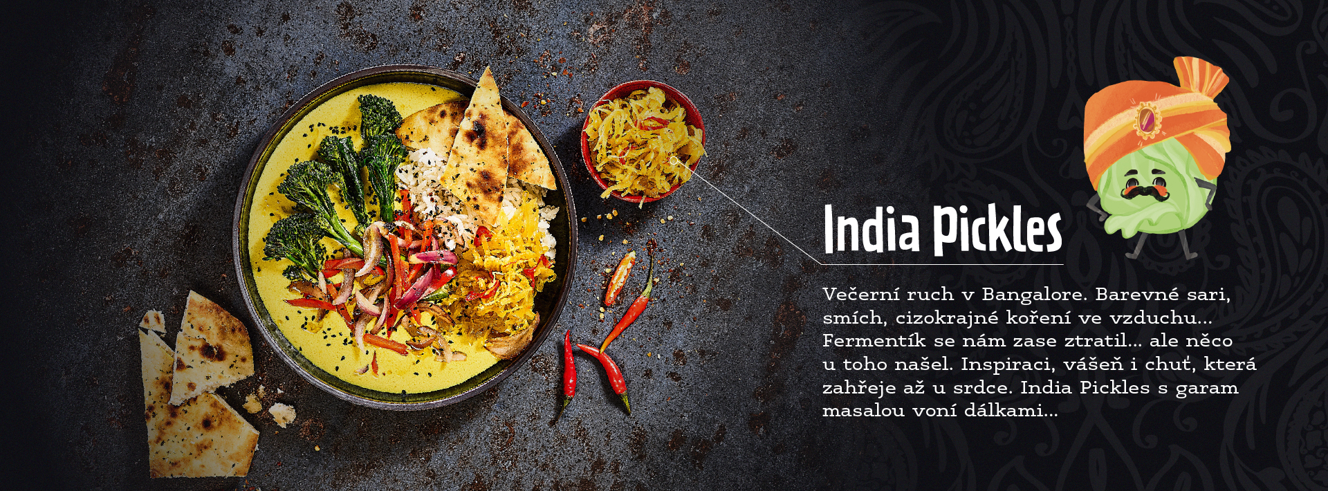 Pickles India je pikantní fermentovaná zelenina s červenou cibulí a chilli, ochucené směsí koriandru, kmínu, hořčičných semínek a exotických koření, které přinášejí pravou...
