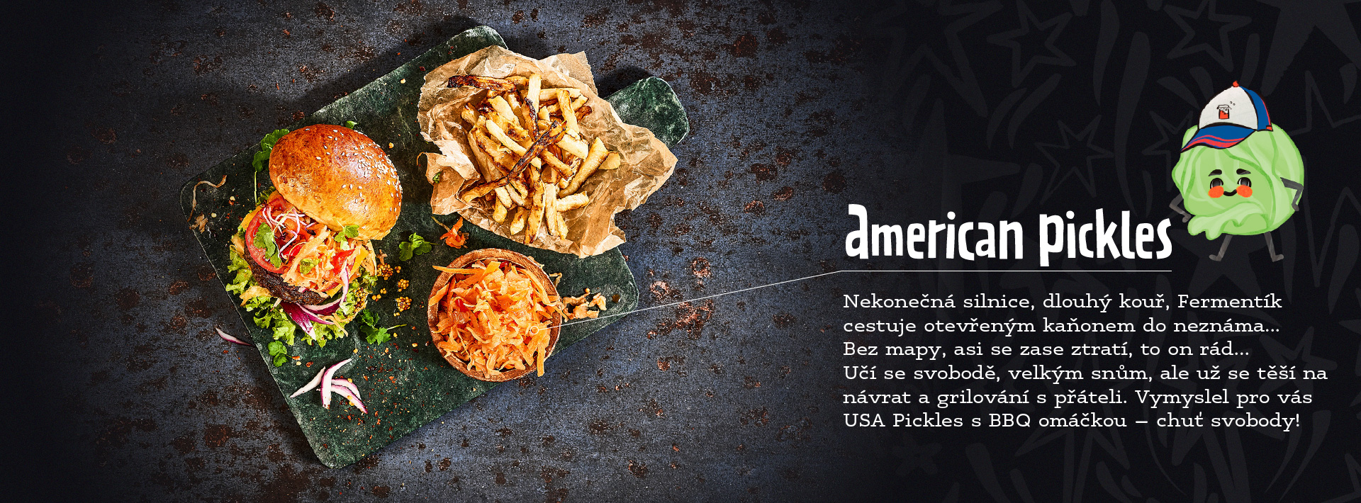 Pickles American BBQ je křupavá fermentovaná zelenina s výraznou uzenou paprikou, česnekem a hořčičnými semínky, které dohromady tvoří autentickou sladkokouřovou BBQ chuť....