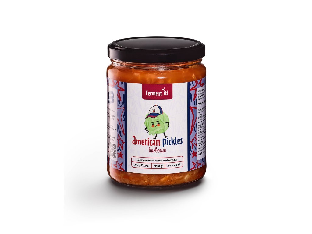 Pickles American BBQ je křupavá fermentovaná zelenina s výraznou uzenou paprikou, česnekem a hořčičnými semínky, které dohromady tvoří autentickou sladkokouřovou BBQ chuť. Skvělé jsou k burgerům a hotdogům, ke grilovanému masu (žebra, pulled pork, brisket, kuře), k sendvičům a wrapům, k hranolkům, pečeným bramborám a batátům, k mac & cheese, k pečené zelenině z grilu, k tacos a quesadillám, k sýrovým talířům (čedar, gouda, uzené sýry), k vajíčkům a snídaňovým talířům, nebo jako topping na BBQ bowl s rýží či coleslawem.
