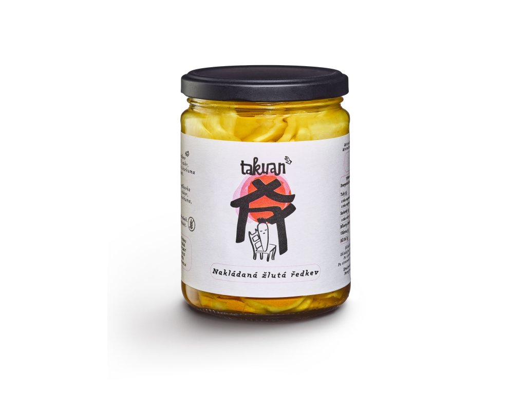 Takuan je tradiční japonská nakládaná bílá ředkev daikon. Výraznou žlutou barvu získává díky kurkumě, která se přidává do nálevu. Je známá svou křupavostí a sladkokyselou chutí. Hodí se k přípravě sushi, do salátů i jako příloha k masům.